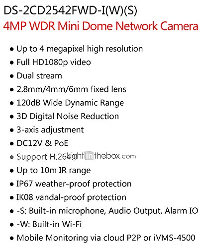 -. Title : HIKVISION DS-2CD2542FWD-IWS 4MP WDR Mini IP Camera (IP67 IK08 Dual Stream POE Wi-Fi Built-in Microphone Audio Output Alarm IO 10m IR)