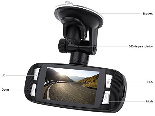 -. Feature : 140 degree wide angle lens, 1920 x 1080P full HD high quality resolution. - 2.7 inch high resolution LCD, can watching while shooting. - 5 mega pixels, 4X digital zoom, range from 12cm to limitless distance. / Support HDMI high quality video transmission. - 5 resolution forms can be changed for video transmission. - 30 / 60 frames per second for smooth video flow. / Powerful document protection, even in the recording process, the occurrence of sudden power outages, machine damage, etc, video files will be intact. - Adopt auto cigarette lighter power supply, to make the video recording while driving. - Automatic circulating video recording, being able to set the record time for each file. - Support for AV-OUT. / Support TF memory card, up to 32GB (not included). - Seamless continuous recording, will not miss any data. - Build-in 300mAh lithium battery, standby time: About 2 hours. / Built-in microphone/speacker (AAC)