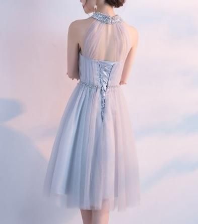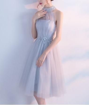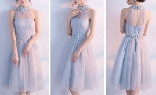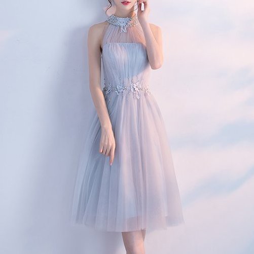 パーティードレス ひざ丈 ワンピース ホルターネック パール調 ビジュー エアリー バックコンシャス シースルー 透け感 上品 大人 清楚 お呼ばれ drgz2209