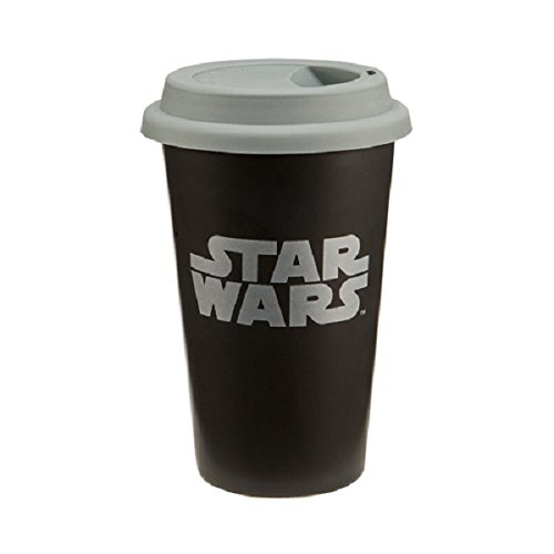 -. Title : Vandor LLC 99251 Star Wars Double Wall Ceramic Travel Mug with Silicone Lid, 12-Ounce, Black and Gray