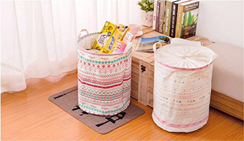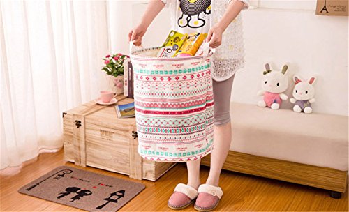 -. Title : Lalago P.R.Inted Ramie Cotton Fabric Folding Laundry Storage Basket Toy Laundry Hamper with Handle (Bohemia Beam Port)