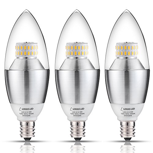 (3 Pack)LOHAS LED Candelabra Light Bulb, 6 Watt (60 Watt Equivalent) Dimmable Daylight White 4000K LED Bulbs, E12 Candelabra Base LED Light Bulbs For Home Lighting