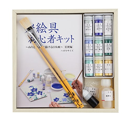 -. Feature : 日本画入門セット / セット内容 絵具(9色)/下絵(2種)/念紙/絵皿(3枚)/麻紙ボード胡粉引き(2枚)/透膠液/骨描き墨汁/筆(面相筆・平筆)/描き方手順書 / 初心者の方でも手順書に沿って楽しくぬり絵のように描いていただくだけで、部屋に飾れるような作品が出来上がります。 / ハガキサイズ(15×10㎝)の作品を2点制作できます。