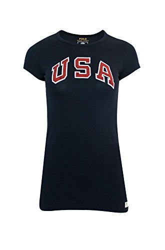 -. Binding : Apparel -. Brand : Polo -. Color : French Navy -. Department : womens -. Feature : VERY TIGHT FIT , Crew neckline.Short sleeves Vintage-inspired "USA" print at the center front Patches with the official logo of the U.S. Olympic Team and "Polo RL 2016 Official Outfitter of the US Olympic Team" text at the front left hem Cotton Machine washable Imported -. ProductGroup : Apparel -. ProductTypeName : SHIRT -. Title : Polo Women's Team USA Long T Shirt Fashion Top