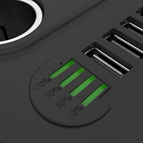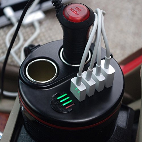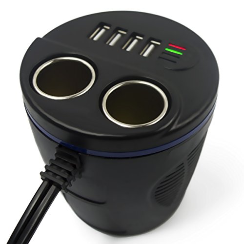 -. Feature : 5-IN-1 Design: combined cigarette lighter socket and USB charging into one compact,space-saving design, charging 4 devices at the same time. With LED voltage display, monitor car battery. / 4 USB Ports: 4 USB ports can automatically detects your devices to deliver its optimal charging speed up to 7.2A in total, great for your iPhones, iPads, tablets, MP3 players, cameras, and other mobile devices / Full Protection: auto-shutdown keep your appliance and car from damage. Built-in 25A/32V fuse, overvoltage, under-voltage, overload, over-current, overheating. Comes with replace fuse, additional protection for you! / High quality cooling technology reduces perceived noise level by up to 50 % versus competitive products,Compact and space saving size. Fits securely into most standard automobile cupholders. / 18 Months Warranty.