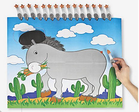 -. Binding : Toy -. EAN : 0075200007159 -. Feature : pin the tail on the donkey poster plus 16 tails / fun children's party game / includes cardboard blindfold with elastic strap -. Label : Fun Express -. Manufacturer : Fun Express -. ProductGroup : Toy -. ProductTypeName : TOYS_AND_GAMES -. Publisher : Fun Express -. Studio : Fun Express -. Title : Pin the Tail on the Donkey Game, Children's Party Game -. UPC : 075200007159