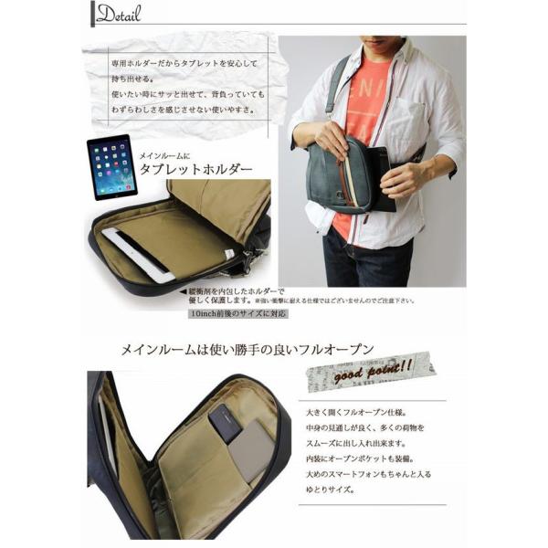 10inchタブレットを持ち運べる、大容量ワンショルダーバッグ ●本体サイズ:幅20x高30×奥行6(cm) ●本体重量 :約540g ●仕様 :【外側】・カブセポケット(マグホック)×1・ジッパーポケット×1【内側】 ・タブレット用オープンポケット×1・オープンポケット×2 |
