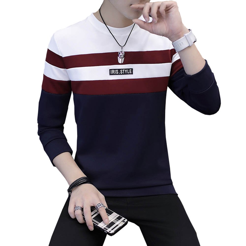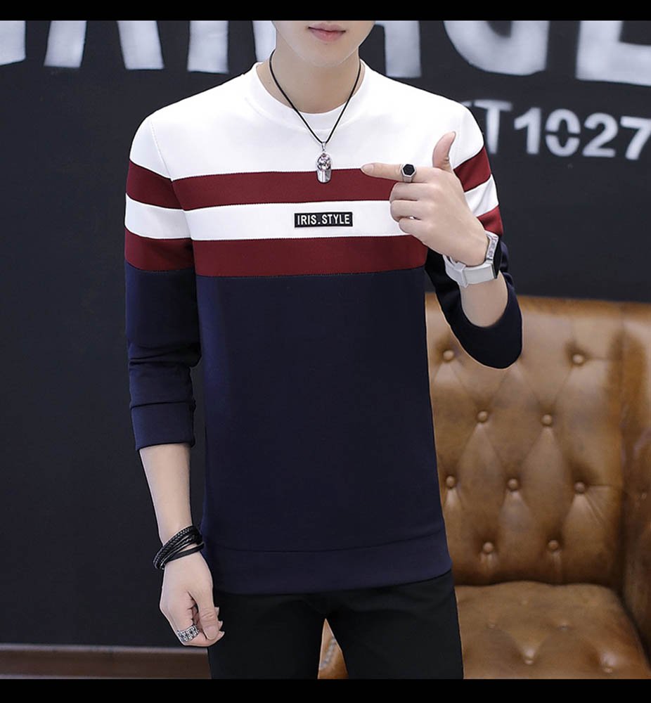 Men's stylish T-shirt crew neck cut and sewn casual tops long sleeves autumn clothes autumn clothes winter clothes thick brushed brushed