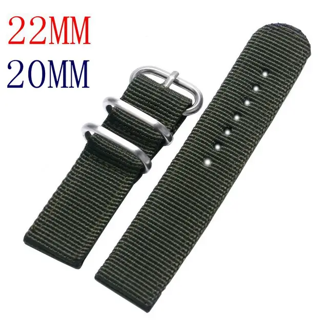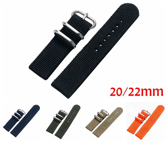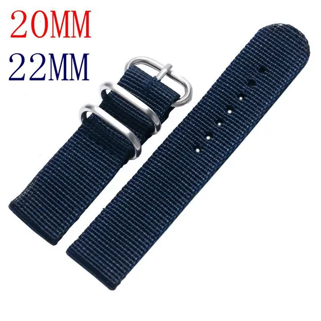 | [해외]20 & 22 미리메터 군사 나일론 직물 캔버스 손목 밴드 스트랩 스테인레스 스틸 블랙/실버 핀 버클 5 색 남성 여성 시계 교체 |