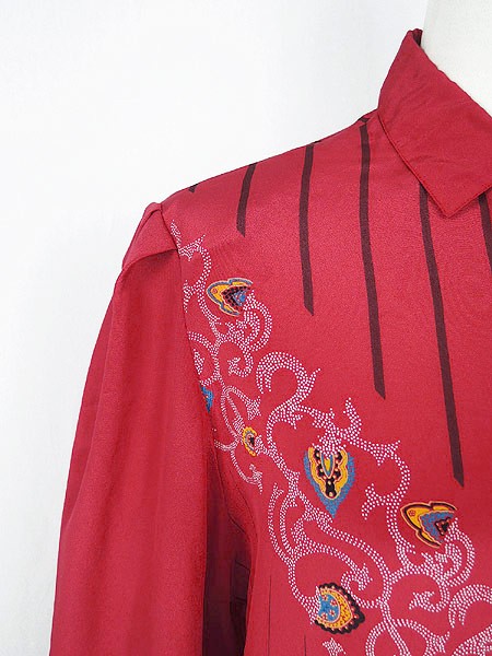 Ladies ブランド- カラー赤ベース メール便不可 コンディション★★★ 素材ポリエステル 表記サイズ38 スタッフコメント後ろ、裾上付近にヨゴレあり。 実寸サイズ 着丈 65 cm 身幅 51 cm 肩幅 37 cm 袖丈 59 cm ※ウエスト・ヒップ以外は平置き採寸