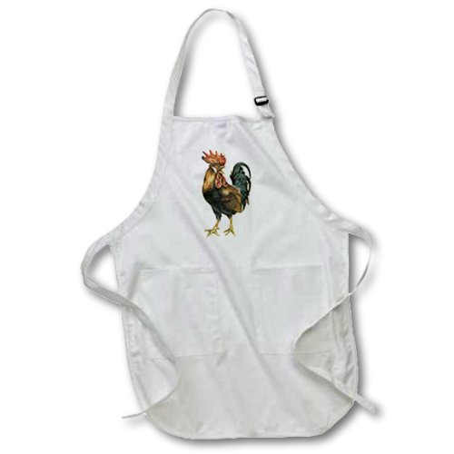 3dRose Vintage Antique Bird Illustration Cock Rooster Chicken - Full Length Apron, 22 by 30-inch, Black, With Pockets (apr_119023_4)