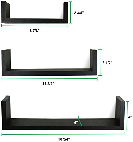 Greenco Set of 3 Floating U Shelves, Espresso Finish