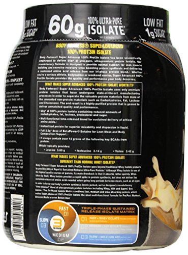 Super Advanced 100% Prot3in Isolate uses only premium protein isolates that have undergone state-of-the-art manufacturing processes. The end result is a highly-purified protein that delivers unmatched quality and performance. What separates our revolutionary formula from normal Whey Isolates is our Sustained-Release Tri-Phase Blend, which is designed to keep your body’s protein synthesis levels jacked. This unique feature makes Super Advanced 100% Prot3in Isolate the ideal multi-functional formula for Pre/Post Workout, Between Meals or even before bed.Feature