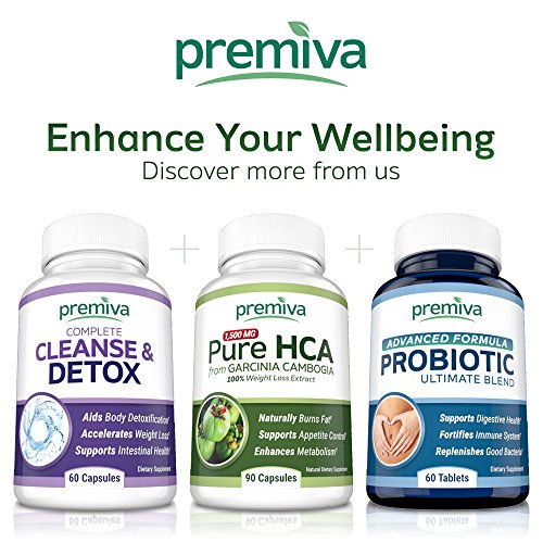 Garcinia Cambogia is a small pumpkin shaped tropical fruit from South East Asia and has become a leading weight loss management supplement. The active ingredient in Garcinia Cambogia is HCA or Hydroxycitric Acid which when combined with a healthy lifestyle, has been shown to be an effective fat blocker and burner. Our product has the absolute highest amount of Pure HCA available (100%). It also acts as a natural appetite suppressant to help keep those cravings under control. It may also enhance your metabolism thus promoting your overall health and well-being. TRY RISK FREE - 100% SATISFACTION GUARANTEED! - At Premiva, we give the highest regard to customer satisfaction, which is why we stand by our 100% Happiness Guarantee for our entire range; we offer a 60-day money back guarantee with no questions asked!Feature