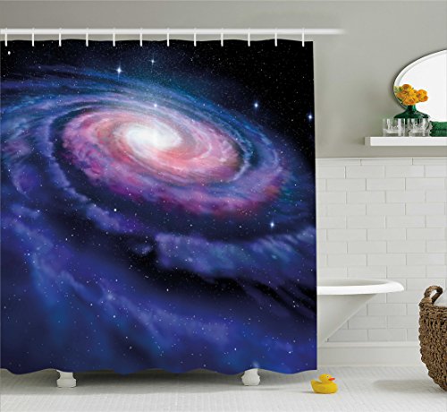 Wide Tap Shower Curtain by Ambesonne, Spiral Galaxy Andromeda Milky Way Cosmic Dust Infinity Glow Mystery Image, Fabric Bathroom Decor Set with Hooks, 70 Inches, Dark Blue Purple