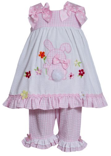 -. Title : Bonnie Jean Baby-Girls Pink Bunny Applique Seersucker CaP.R.I Set 24 months