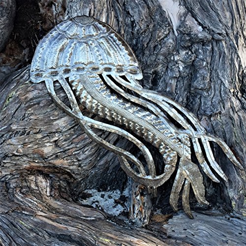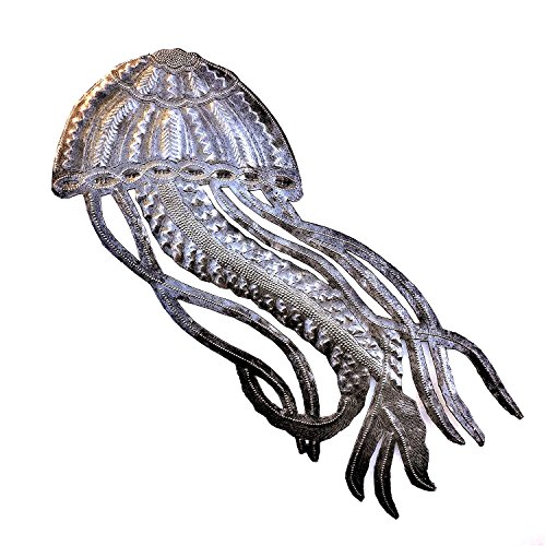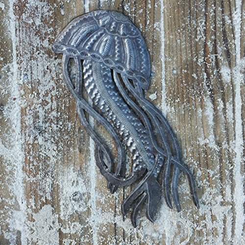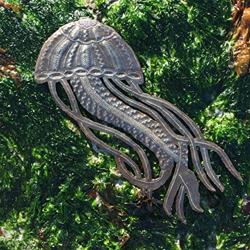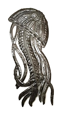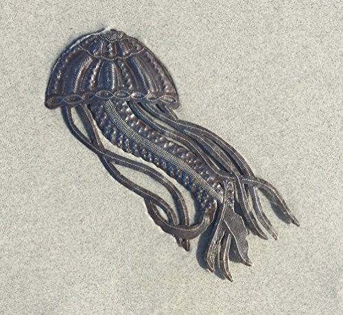 Jellyfish, Ocean Beach, Nautical Decor, Haitian Metal Wall Art 17" X 7"