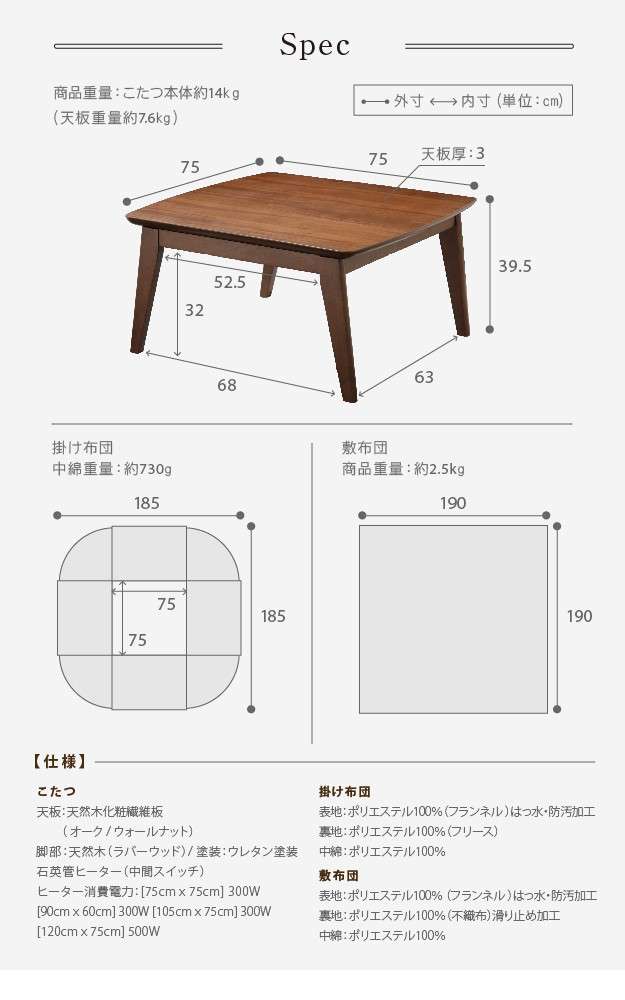 ●幅75x奥行75x高さ39.5cm