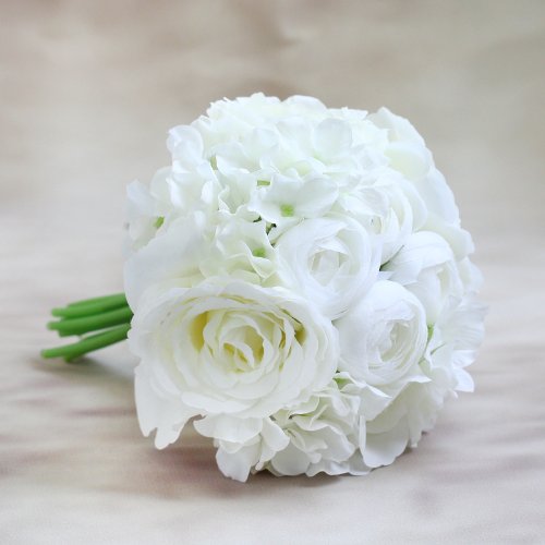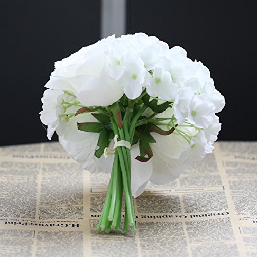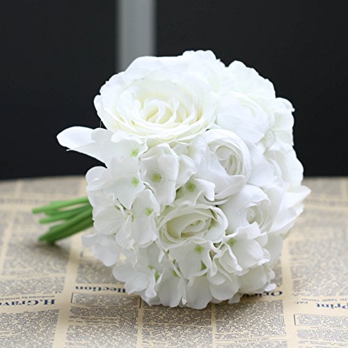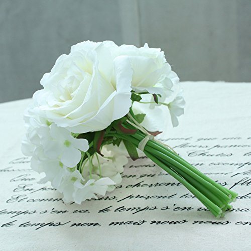 Decor Artificial Flowers Real Touch Silk Flowers Floral Latex Real Touch Rose Peony Wedding Bouquet Home Party Design Flowers (White,1 Bunch)