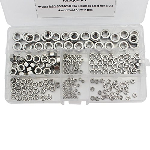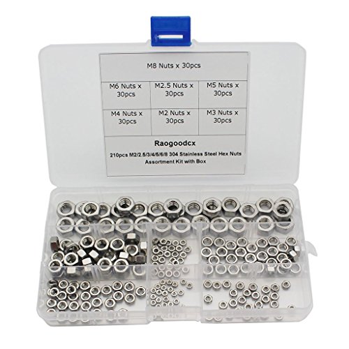 Raogoodcx 210pcs M2/2.5/3/4/5/6/8 304 Stainless Steel Hex Nuts Assortment Kit with Box