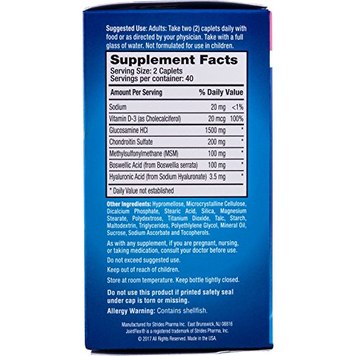 ReleaseDate : 2017-08-17 Studio : JointFlex Publisher : JointFlex Binding : Health and Beauty Product Description JointFlex Advanced Joint Health offers a unique slow release formulation designed to enhance joint performance by continuously releasing glucosamine and chondroitin throughout the day without overloading the body with these ingredients at any point in time. This longer exposure provides more efficient support and enhanced relief when compared to immediate release formulations. Supplemental glucosamine and chondroitin have been clinically proven to show major benefits in treating and relieving the symptoms joint conditions such as osteoarthritis and other cartilage or ligament damage with no or minimal side effects. The formula contains 1500 mg of glucosamine per dose (2 tablets) combined with a proprietary blend of additional nutrients such as chondroitin, vitamin D3, MSM, boswellia serrata and HLA that aid in joint health. These ingredients have shown to be more effective than other pain relievers and anti-inflammatories because of the long-lasting benefits that continue after initial treatment. 0