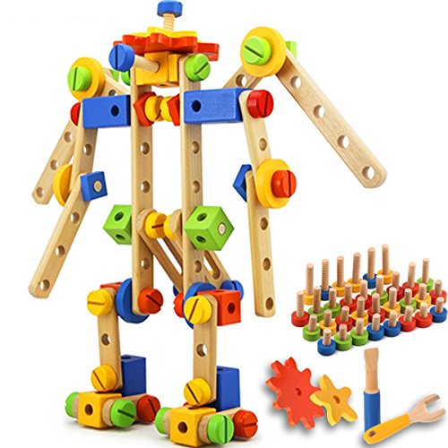 -. Feature : 【UNLIMITED FUN】84PCS Wooden Blocks Set,which can be assembled into Many patterns, such as:Robot,Train, Steamship, Aircraft, Elephant, Flower, Machine gun and more. / 【SAFE FOR KIDS】This product is suitable for children age 3year+.See confidence and self-esteem grow as children two and older rise to the challenge of matching the shapes and creating different patterns. / 【BEST GROWTH PARTNER】This wooden blocks helps teach sorting skills, color and shape recognition, and helps children develop and hone fine motor skills. It encourages problem-solving and builds hand-eye coordination and manual dexterity. / 【AS ALWAYS 】- NO ELECTRONICS! Wood blocks to boost your children's creativity. / 【QUALITY ASSURANCE】Made from durable and sustainable wood - each piece is carefully crafted so there are no rough edges.