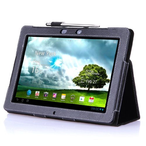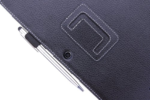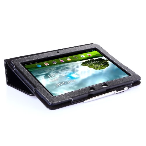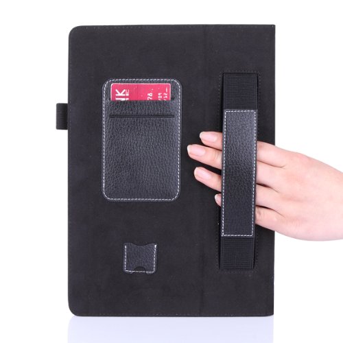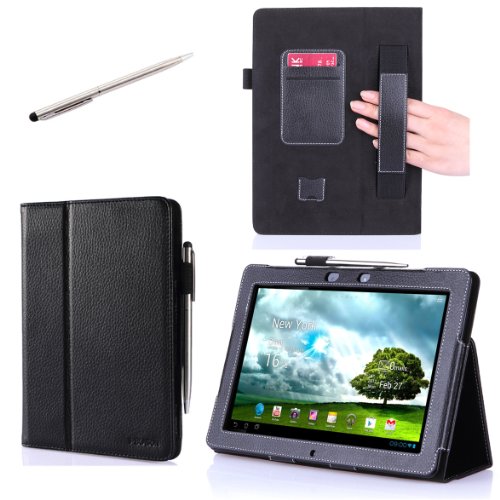 i-BLASON Asus Memo Pad Smart 10'' ME301T Leather Case Cover (Elastic Hand Strap, Multi-Angle, Card Holder ) With Bonus Stylus (Multi-Color to Choose From) 3 Year Warranty (Black
