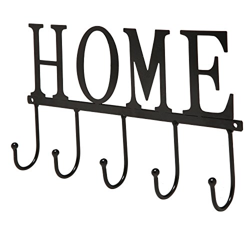 - Wall mounted hook rack featuring a classic black finish and the word "Home" in large letters.