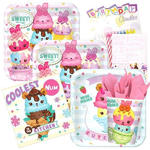 Num Noms Birthday Party Supplies Kit Serves 8 Plates Napkins Cups Tableware Supply Set Pack include Tablecloth and Candles