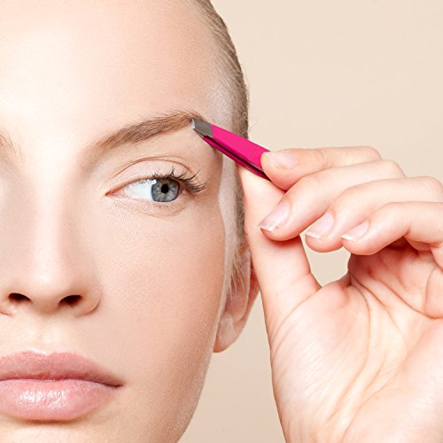 BEST SLANT TWEEZERS PINK Set Includes CASE and Ebook - Precision Eyebrows Tweezer - Stainless Steel - For Beautiful Eyebrows!