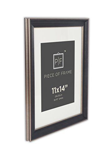 Golden State Art, 11x14 Photo Frame, Silver Beige, Black & Dark Brown Pewter Panel, with Ivory Mat for 8x10 Pictures & Real Glass