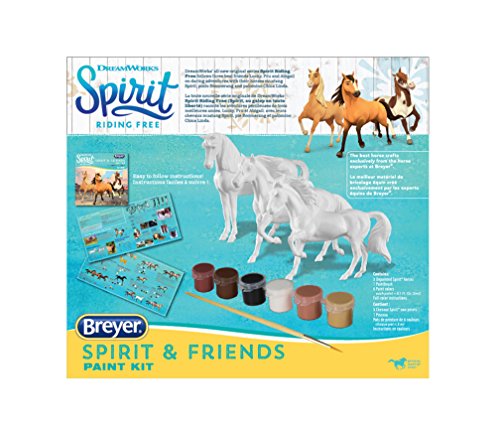 Horse lovers can let their creative energy flow as they paint their very own Spirit, Boomerang, and Chica Linda from the all-new DreamWorks series Spirit: Riding Free! Each Breyer model measures approximately 3.75” tall and comes primed and ready to paint! The full-color instruction booklet offers painting tips and inspiration. Once the paint dries, they’re ready for display or your next big play adventure! This fun set includes: 3 ready-to-paint models, 6 water soluble acrylic paints, 1 paintbrush, and a full-color instruction booklet.Feature