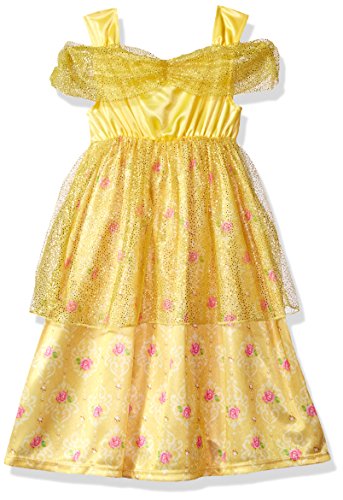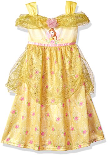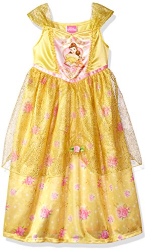 Make all of your princess dreams come true in this beauty and the beast belle fantasy nightgown. Complete with a sparkly sheer overlay fabric this fantasy nightgown is perfect for playing dress up and is sure to make you feel like your favorite Disney princess. Perfect for sleeping, lounging or play time.Feature