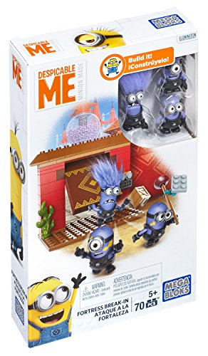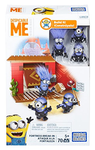 -. Binding : Toy -. Brand : Mega Bloks -. EAN : 0887961251227 -. Feature : Buildable El Macho's Fortress gate with buzzer detail, and a door that opens with a flick / Two buildable Minion characters in purple disguise and one buildable evil Minion / Minions come with plunger prodding sticks and interchangeable parts, including overalls, goggles, arms and feet / Combine with other Mega Bloks Despicable Me playsets / Build your own Minion mischief! -. IsAdultProduct : 0 -. Label : Mattel -. Manufacturer : Mattel -. Model : DKX77 -. MPN : DKX77 -. PackageQuantity : 1 -. PartNumber : DKX77 -. ProductGroup : Toy -. ProductTypeName : TOYS_AND_GAMES -. Publisher : Mattel -. Studio : Mattel -. Title : Mega Bloks Despicable Me Fortress Break-In -. UPC : 887961251227 -. Warranty : 1 year warranty against manufacturer defects