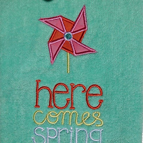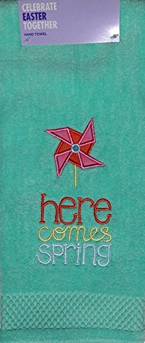 Here Comes Spring Embroidery Decorative Cotton Kitchen Bath Hand Towel - Aqua Blue