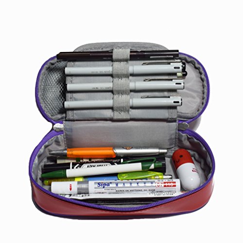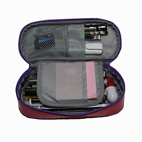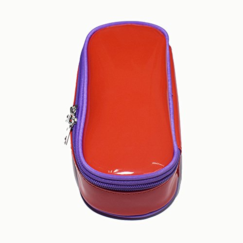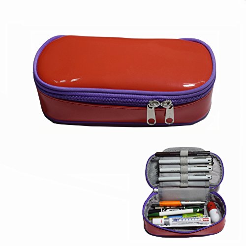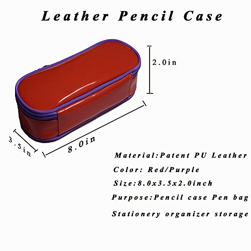 Multi-purpose Shiny Leather Pencil Case Pen Bag Holders Stationery Organizer Storage Pouch with Big Capacity Waterproof and Easy Clean(Red/Purple)