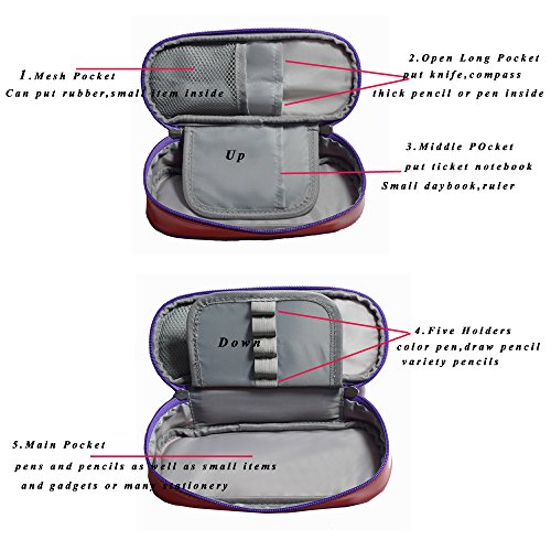 - Middle Flap: Elastic band five Holders , Hold more pencils and pens, Save more space,and Separate case into two layer
