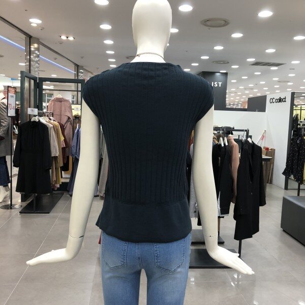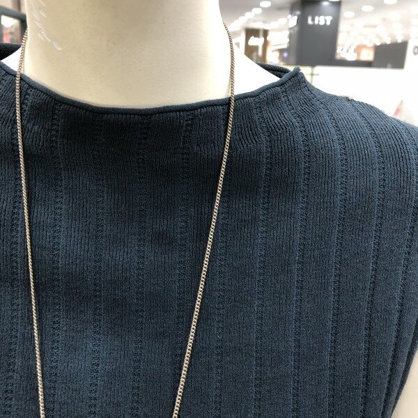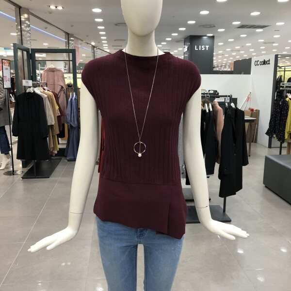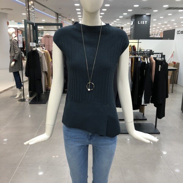 캡소매 라운드니트입니다.언발한 밑단이 포인트이고,목걸이 세트의 구성으로 고급스러움을 연출할수 있습니다.