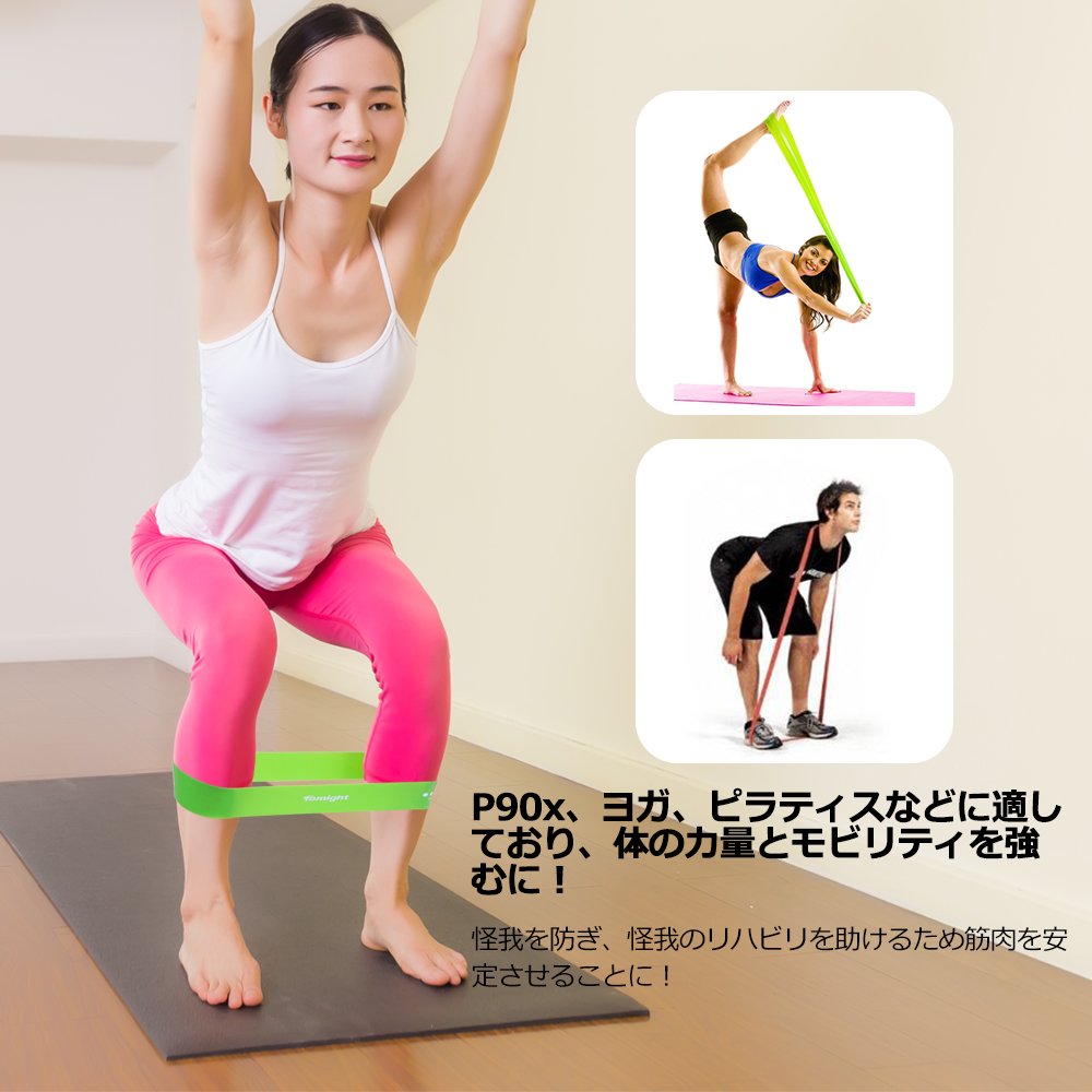 You can provide an appropriate level of resistance by using a single band on the legs, arms, back, ankles, buttocks, shoulder, or combining multiple bands.