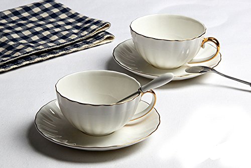 -. Title : Lautechco Simple Style Teacup and Saucer Set ,Bone China,coffee Cups Set,Floral Tea Cups 230ml/7.7FL.OZ White