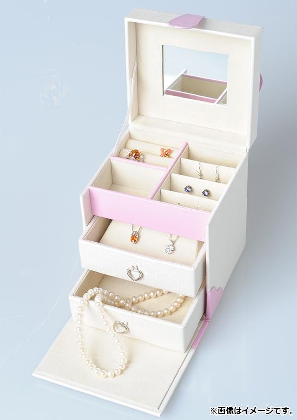 | 指輪等を並べて収納できるスペースや小ぶりなピアスを整理できるピアスホルダーまであるジュエリーボックスです。フタの内側にはミラーが付いており、機能的に大切なジュエリーを保管することができます。 |