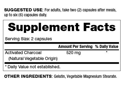 -. Feature : May absorb certain ingested poisons and toxins. / Store in a dry place and avoid excessive heat. Do not use if seal under cap is broken or missing. If you are pregnant, nursing or taking any medications, consult your doctor before use. Discontinue use and consult your doctor if any adverse reactions / Specialty Products / Capsules / 100 ct
