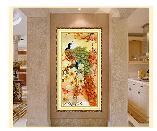 Cross Stitch Kit, Magnolia Peacock 124x69cm. DIY Needlework Handmade Embroidery Home Room Decor