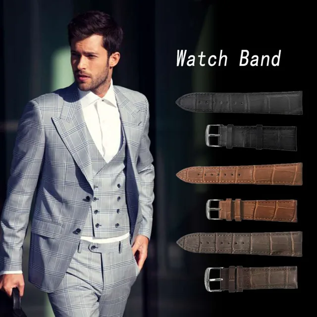 | [해외] 내구성 대나무 패턴 가죽 시계 밴드 스테인레스 스틸 버클 가죽 스트랩 시계 팔찌 패션 손목 세트 새로운 도착 |