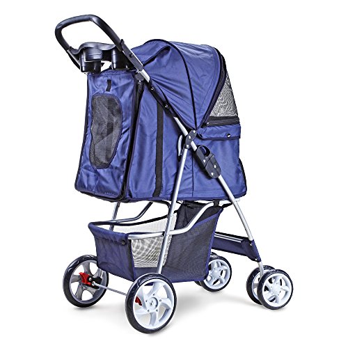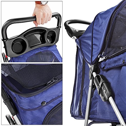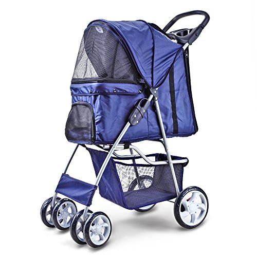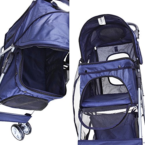 Package Content: - 1x 4 Wheels Pet Dog Pet Cat Stroller Deluxe Folding for Travel Dark BLue