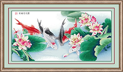Happy Forever Cross Stitch, animal fish ,The carp and lotus