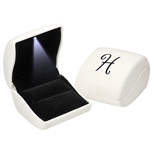 ANDREW FAMILY White Monogram Jewelry Gift Boxes Case with LED light for Ring Earrings Pendant, Initial- H