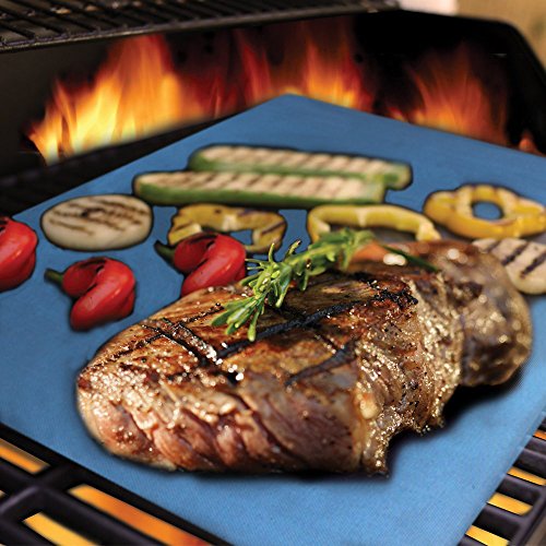 PRACTICAL BARBECUE TOOLS:Perfect for any grill,including as Char-Broil, Weber,Porcelain,Charcoal and even Infrared Grills,the mat sits right over your grill grates preventing your food from falling through the cracks,enjoy grill your meat, vegetables, fish, shrimp, pizza, even pancakes,bacon and eggs and so on,you could be a super grill master with these magic blue grill mats