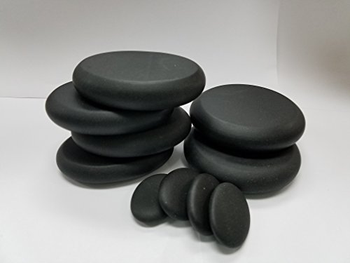 Product Description 4 Oval Hot Stone 3 inch X 2 inch X 0.4 ( little less than half an inch) 2 Round Hot Stone 3 X 3 X 0.4 ( little less than half an inch) 4 Mini Oval Stone 1.3 X 1 0