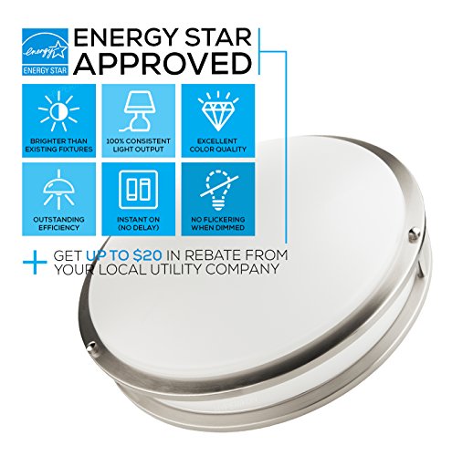 Hyperikon LED Flush Mount Ceiling Light, 14", 25W (100W equivalent), 2290lm, 4000K (Daylight Glow), 120V, UL and ENERGY STAR Listed, 14-Inch Flush Mount, Dimmable